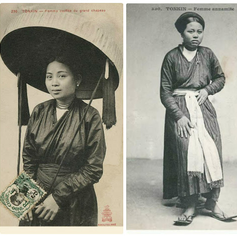 The primitive version was the “Giao Lanh”, four-flap dress which was the original version of ‘áo tứ thân’. The long flaps were not tied together, but hung freely or left intersected. The clothes were worn with a type of camisole, a long black dress and a colored fabric belt used to tie up around the waist.